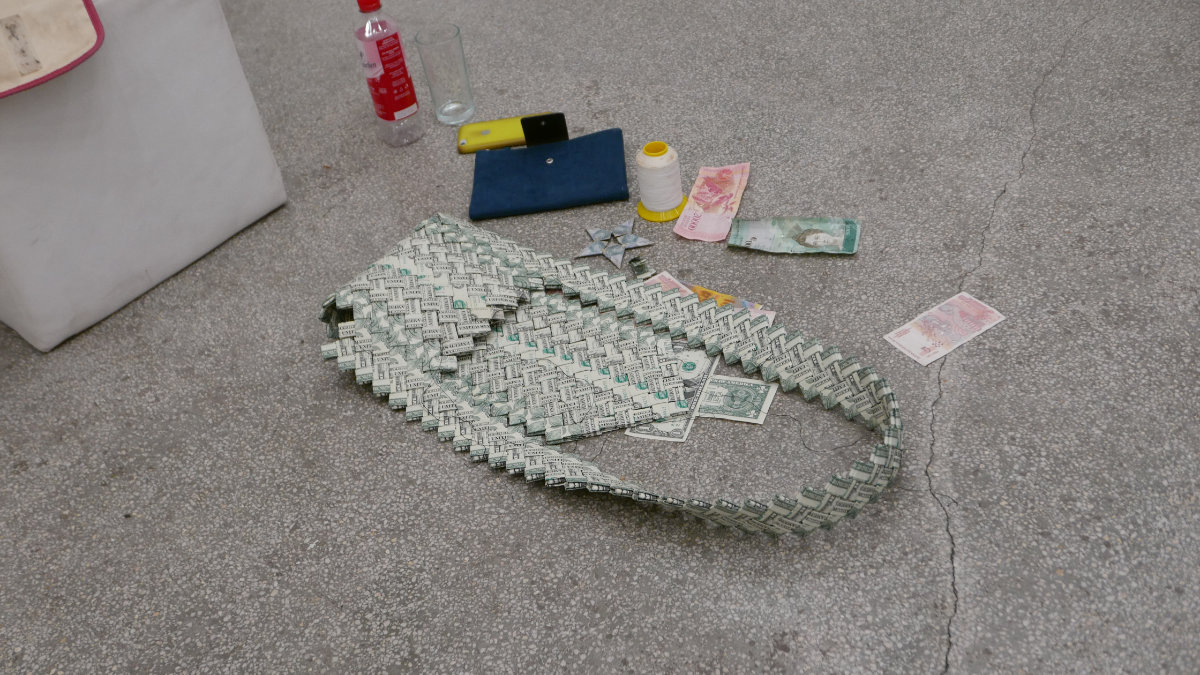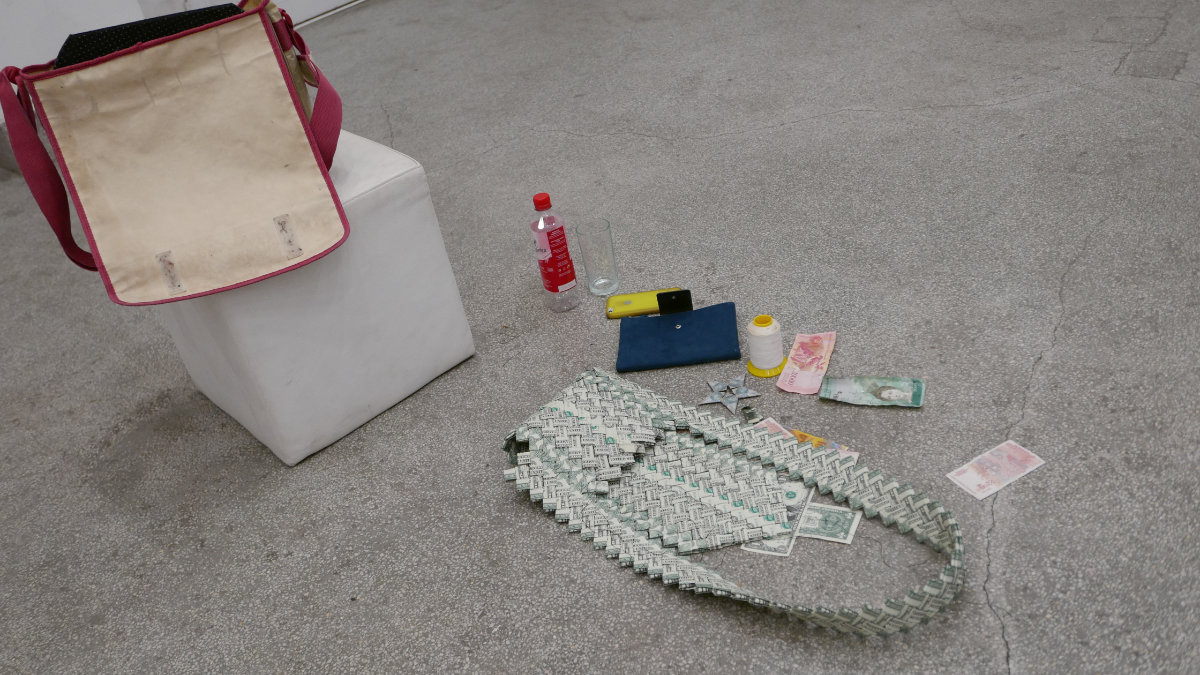 The transition from the process to the result is the poster on which I fold the dollars and the diary with photographs and possibly one phrase per day.