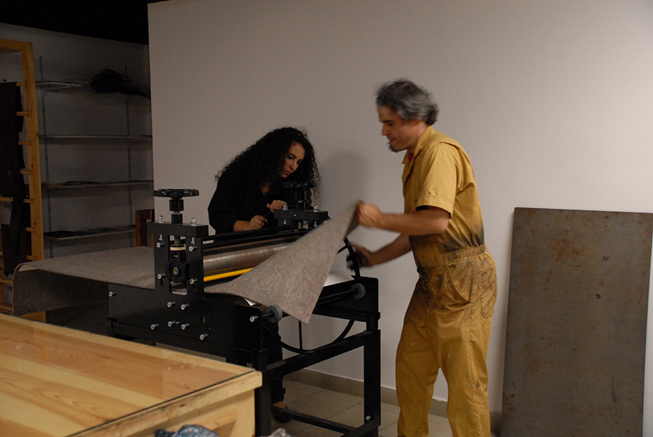 The numerous encounters through negotiations with school directors, conversations with teachers and pupils, the search for print workshops and the realisation of three exhibitions during the journey are all an integral part of the project. In addition, I gave three lectures in universities and several art lessons in schools.