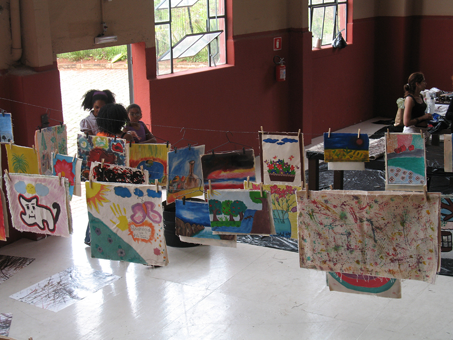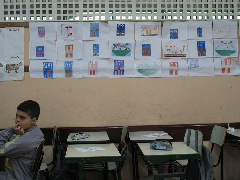 During the three-month period I succeeded in borrowing 100 desks from 11 schools and printing the desktops on the handmade paper I had brought with me. The participating schools included both expensive private colleges and public reform schools in socially deprived areas, for example the city quarter Jardim Angela, which is considered one of the most dangerous in Brazil. The residency was rounded off by a public talk with Laymert Garcia dos Santos, sociologist and member of the management committee for the São Paulo Art Biennial.