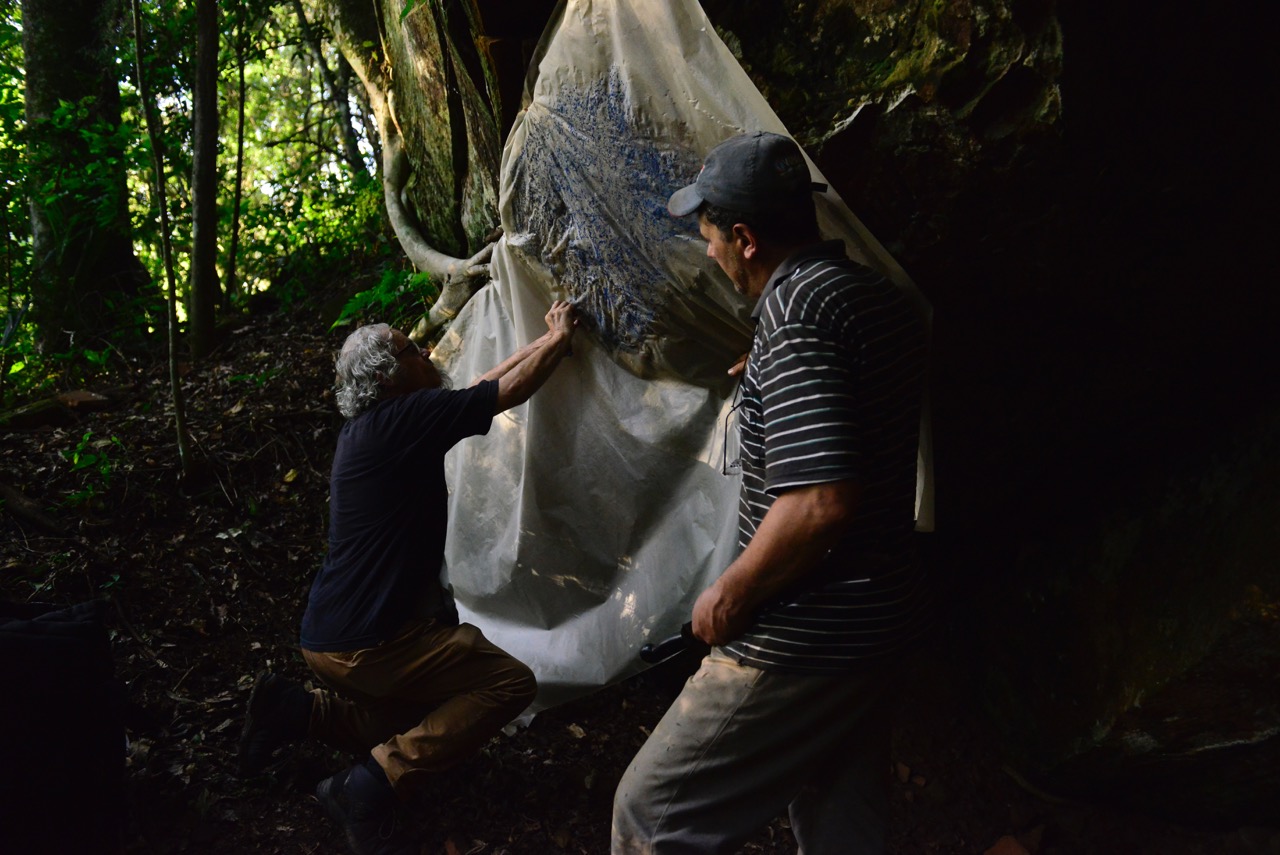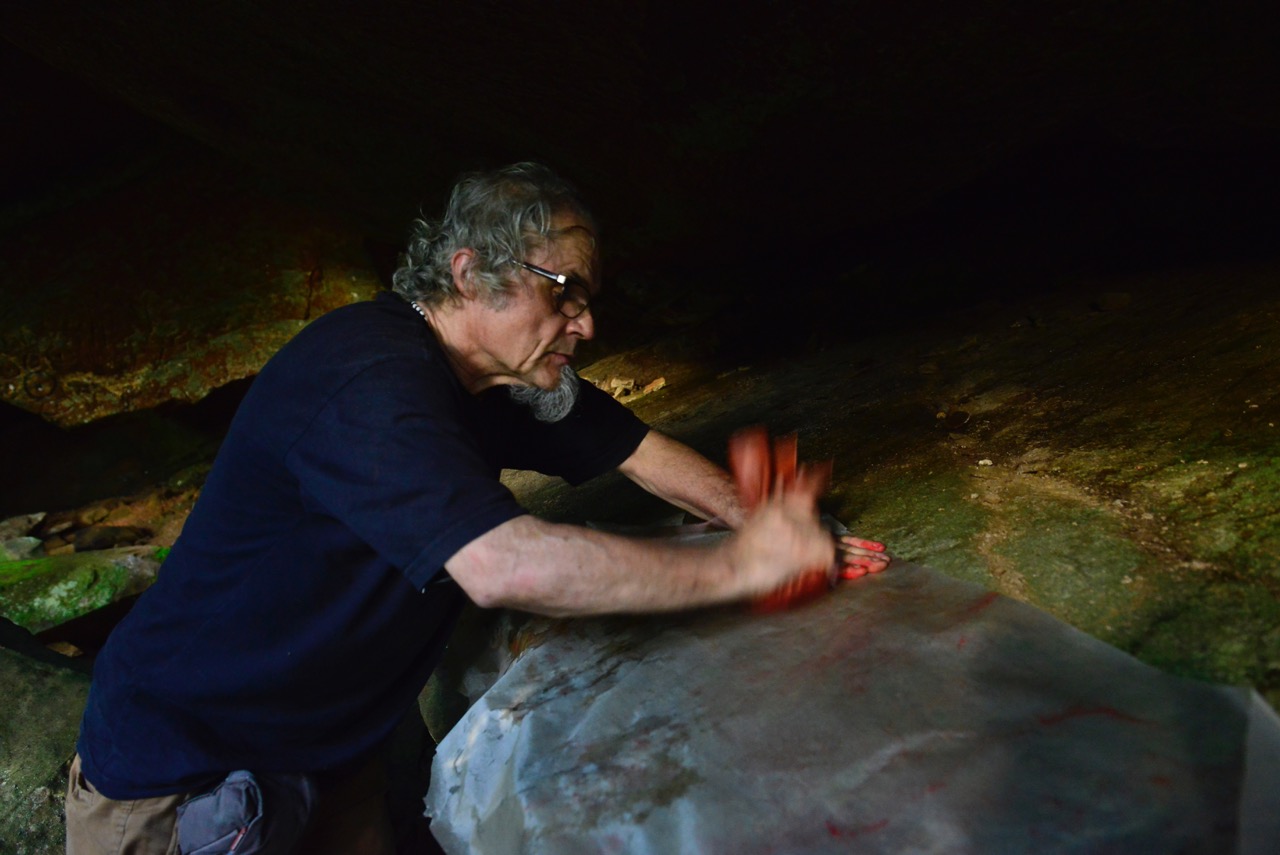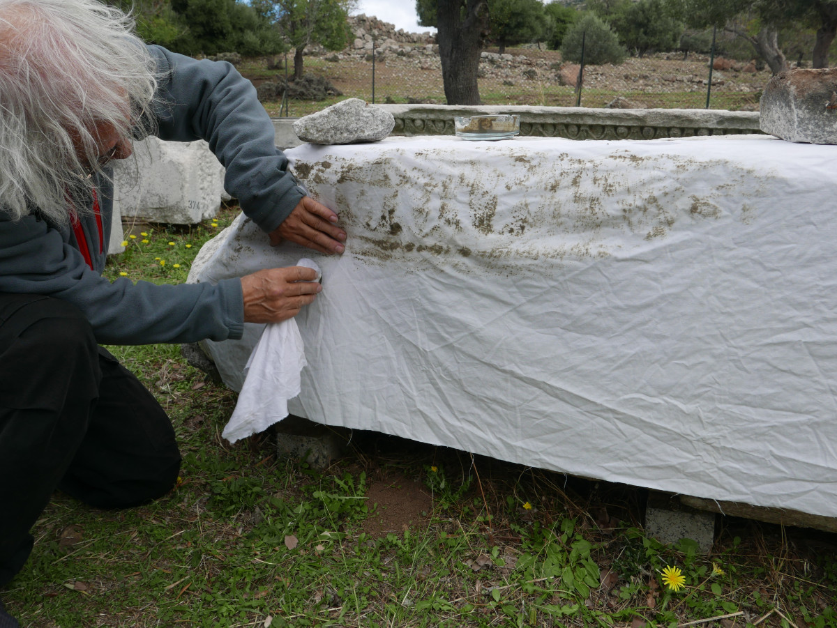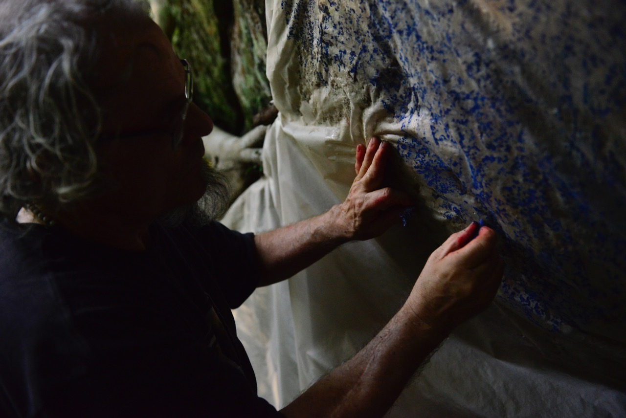 Surface structures of walls and stones are transferred onto paper or fabric using crayons and pencils, but mostly by means of a Chinese tampon technique acquired in the Palace Museum in Beijing. Often, a traditional silk specifically developed for East Asian calligraphy serves as the image support. Size and colour are adapted to on-site conditions.