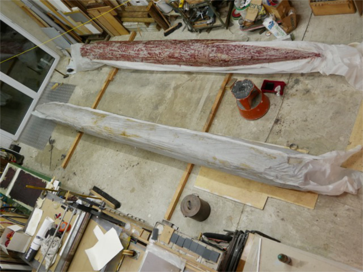 Two of the piles from the palace – driven into the ground in 1707 and removed in 2012 – form the printing blocks for the project: Preussisch schwarz-weiss (Prussian black and white).