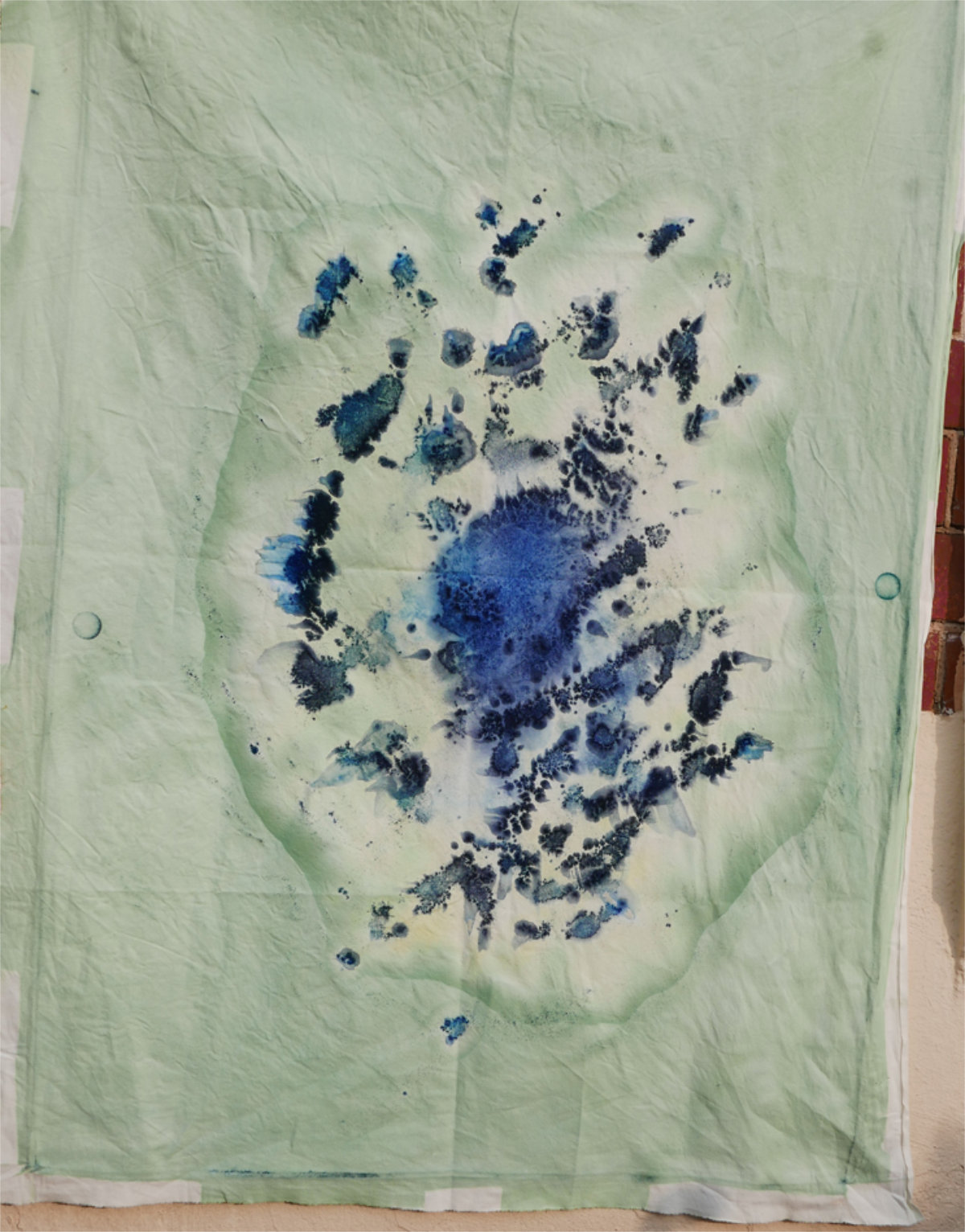 In order not to lose the reference to Otto von Bismarck’s blood and iron policy when he was Chancellor of the German Empire, the colour elements are obtained from wood residue, iron powder and blood – four times horse blood and four times cattle blood. For the letterpress printing process on handmade paper, it was necessary to custom develop a traditional printing ink based on blood. Berlin blue, the colour of the Prussian uniform, is synthesised from iron oxides and blood lye salts. Originally, this ink was indeed obtained from blood. In two monotypes of each pile, this synthesis is part of the printing process.