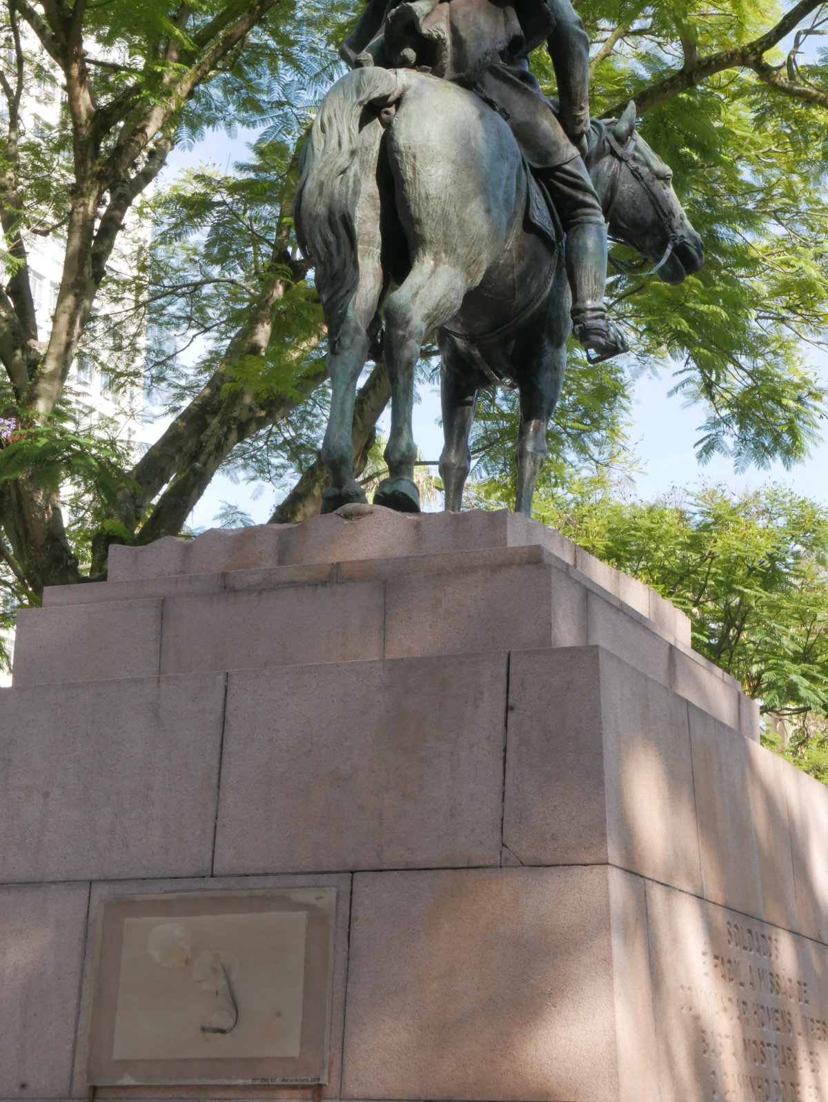 Im September 2018, zeitgleich mit dem Jahrestag des Farroupilha-Krieges, an dem die Gaúchos ihre Traditionen mit Pferdeparaden und Grillfesten feiern, wurde der Verlauf des Défilés mit 21 Monotypien in Gießharz eröffnet. Keiner der Interviewer von TV, Print- oder Online-Medien zeigte Interesse an den Materialien, die für die Drucke verwendet wurden.
