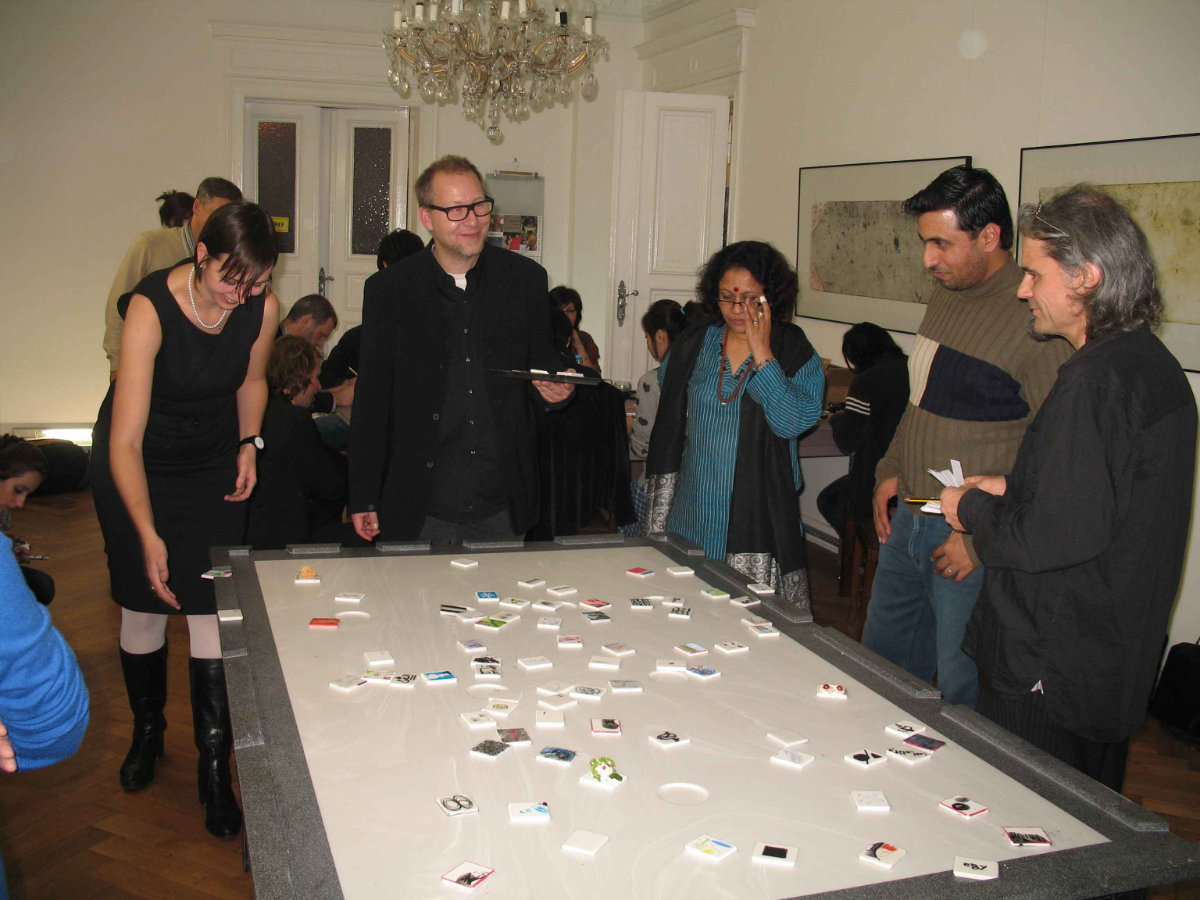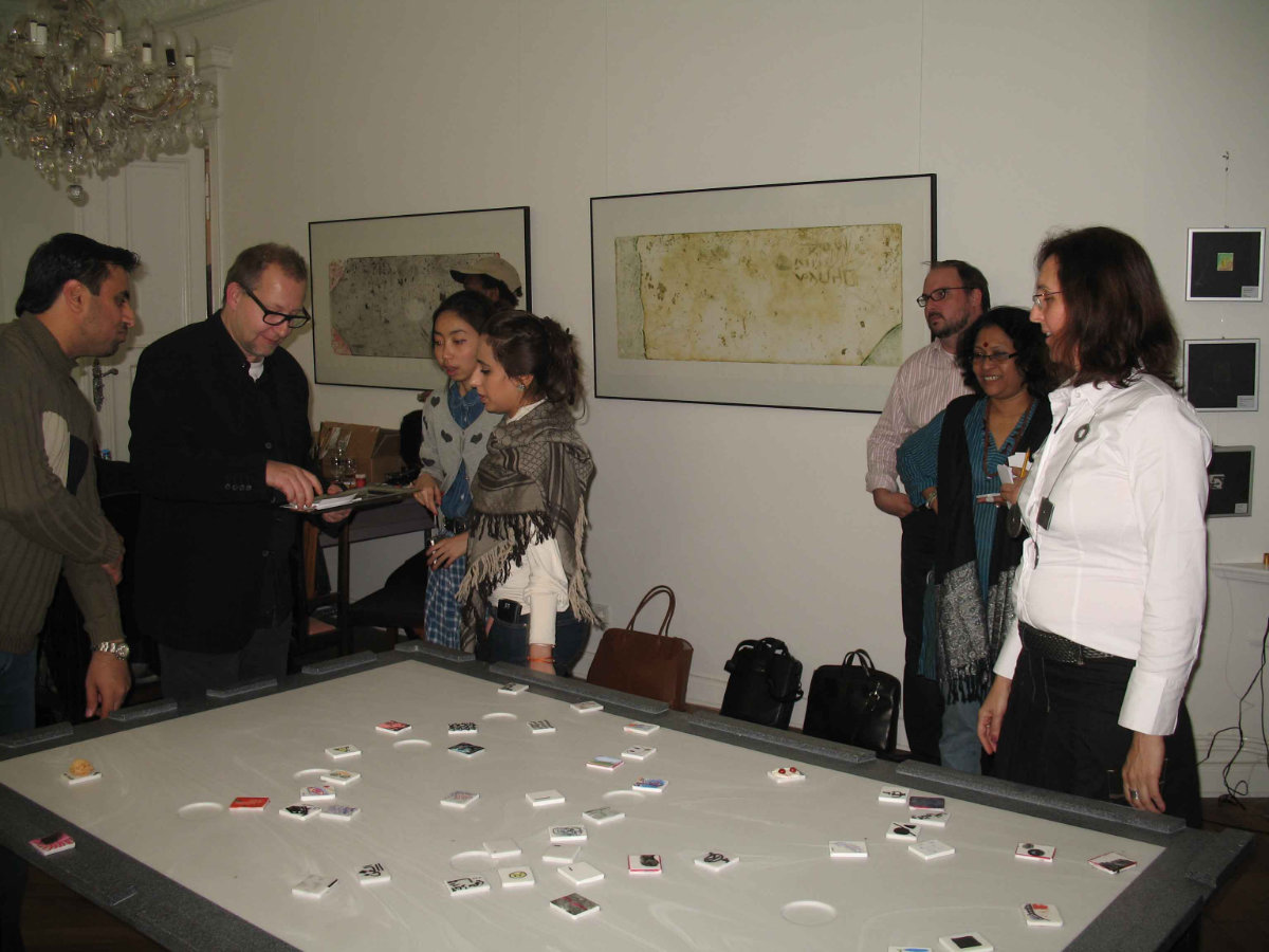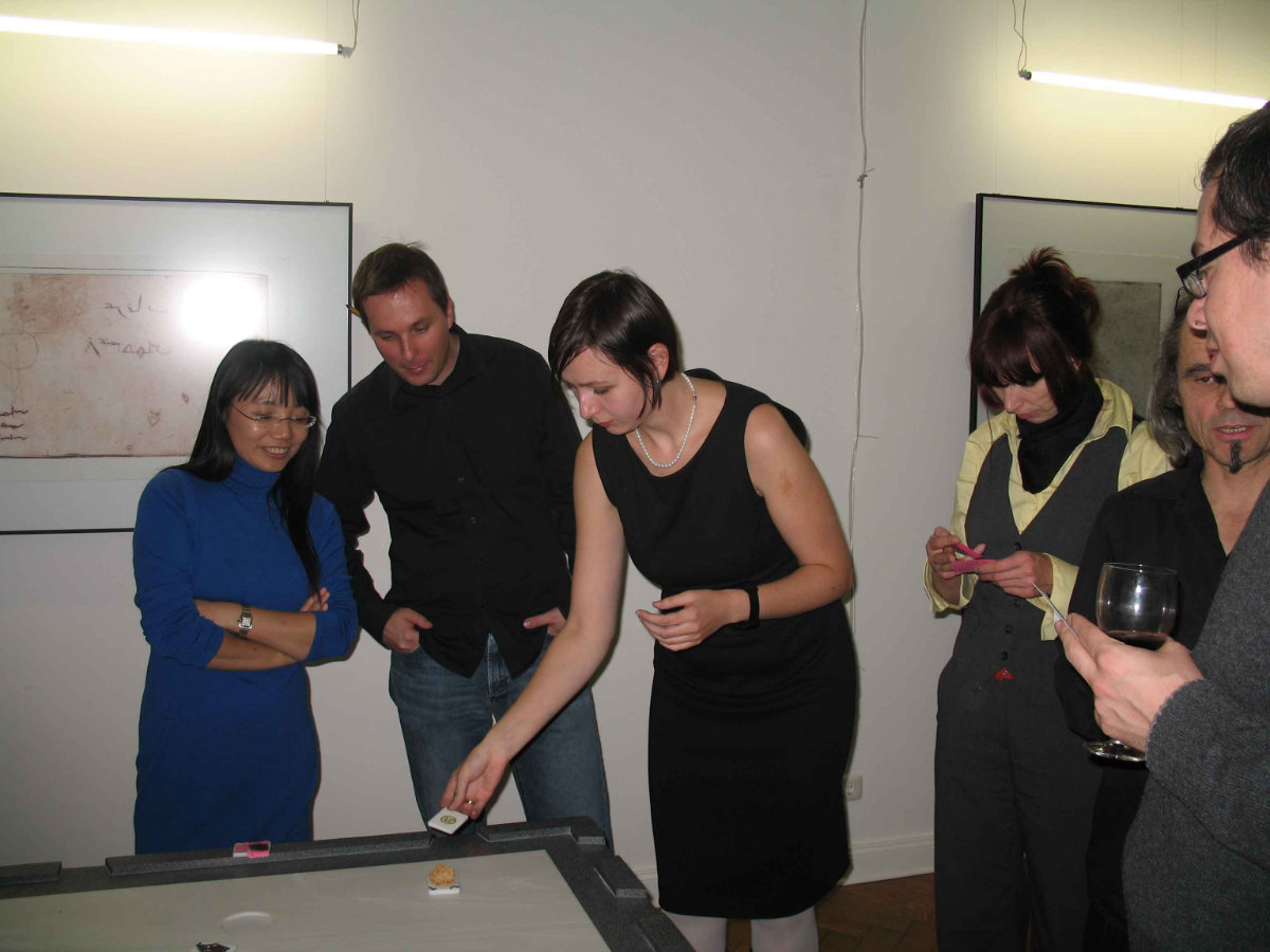 Wir beginnen in einem surrealen Kontext ohne den Louvre und die Guggenheim Foundation, ohne Trendsetter und mit leergefegtem Kunstmarkt. Somit haben Sie die Möglichkeit, den ersten Trendsetter mitzubestimmen oder vielleicht besetzen Sie selbst diese richtungsweisende Position. Spielerisch, kreativ werden Kunststeinplättchen bearbeiten und auf dem "Kunstmarkt", einer Art großem Billardtisch, in ausichtsreiche Position gebracht. Schon nach kurzer Zeit verdichtet sich der "Kunstmarkt".