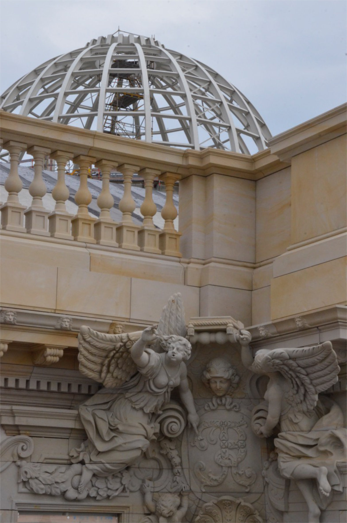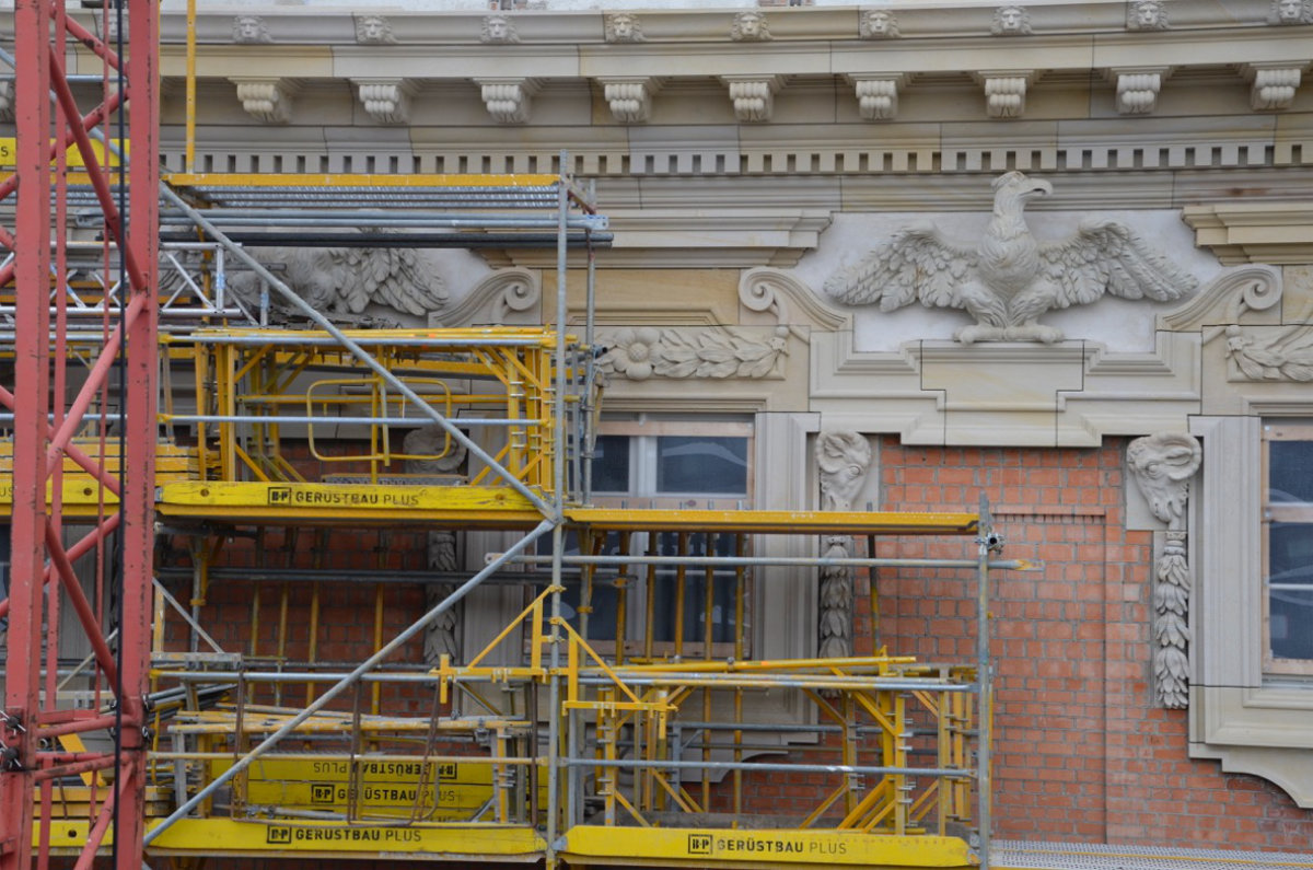Im Jahr 2007 beschloss das Parlament der Bundesrepublik Deutschland, die Fassade der Kaiserpfalz mit moderner Technik zu rekonstruieren. Das Humboldt-Forum beherbergt große Sammlungen außereuropäischer Kunst und ist als Ort der Diskussion vorgesehen. Die Fassade ist mit dem alten/neuen Preußenhelm geschmückt.