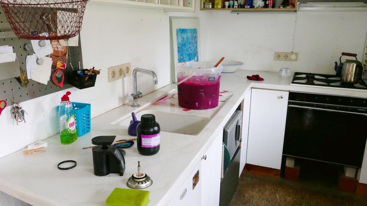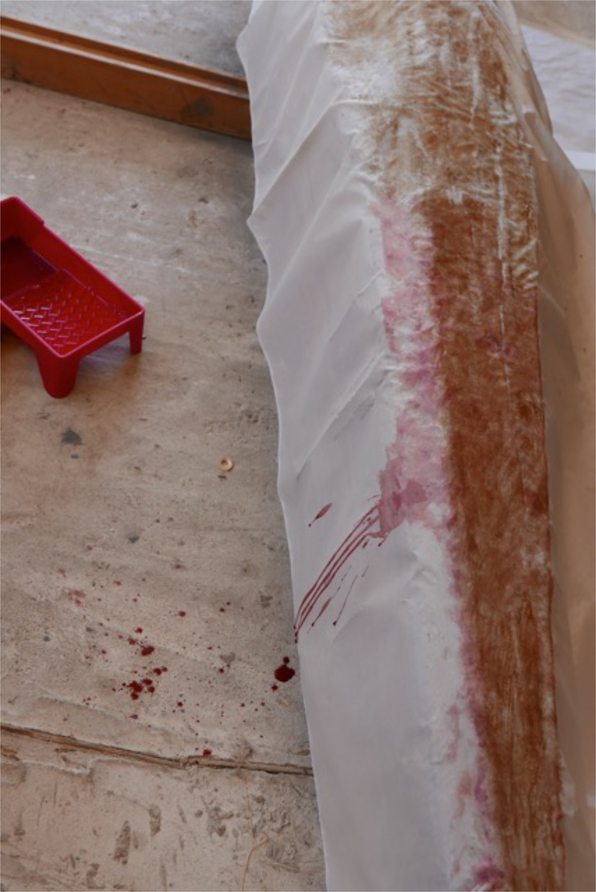 Um den Bezug zur Blut- und Eisenpolitik Otto von Bismarcks als Reichskanzler nicht zu verlieren, werden die Farbelemente aus Holzresten, Eisenpulver und Blut gewonnen - viermal Pferdeblut und viermal Rinderblut. Für den Buchdruck auf handgeschöpftem Papier musste eine traditionelle Druckfarbe auf Blutbasis entwickelt werden. Berliner Blau, die Farbe der preußischen Uniform, wird aus Eisenoxiden und Blutlaugensalzen synthetisiert. Ursprünglich wurde diese Farbe tatsächlich aus Blut gewonnen. In zwei Monotypien von jedem Flor ist diese Synthese Teil des Druckverfahrens.