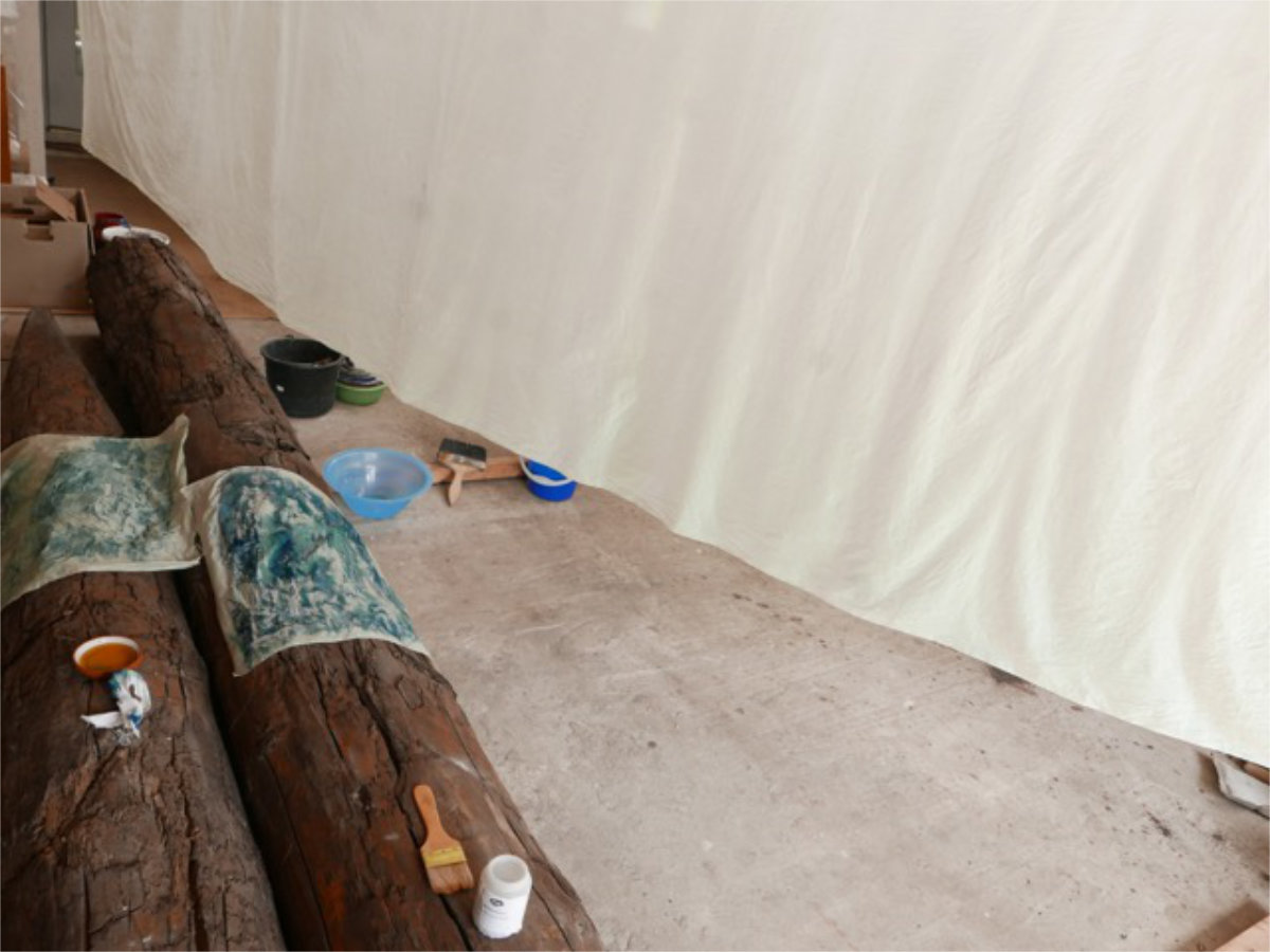 Jeder Pfahl wird achtmal vollständig auf separaten Bögen gedruckt. Acht Drucke sind auf japanischer weißer Seide (vier von jedem Stapel) und acht auf traditionellem handgeschöpftem Papier. Die Seidendrucke werden in einem asiatischen Tampondruckverfahren hergestellt. Die Drucke auf handgeschöpftem Papier werden unter hohem Druck realisiert, wie er für Holzschnitte üblich ist. So entstehen insgesamt sechzehn großformatige Monotypien in der Originalgröße der Stapel.