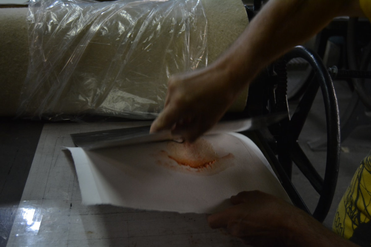 Handmade paper of about 300 g/sqm is cut to a size of about 60 x 80 cm and taken to the Pampas for the castração.