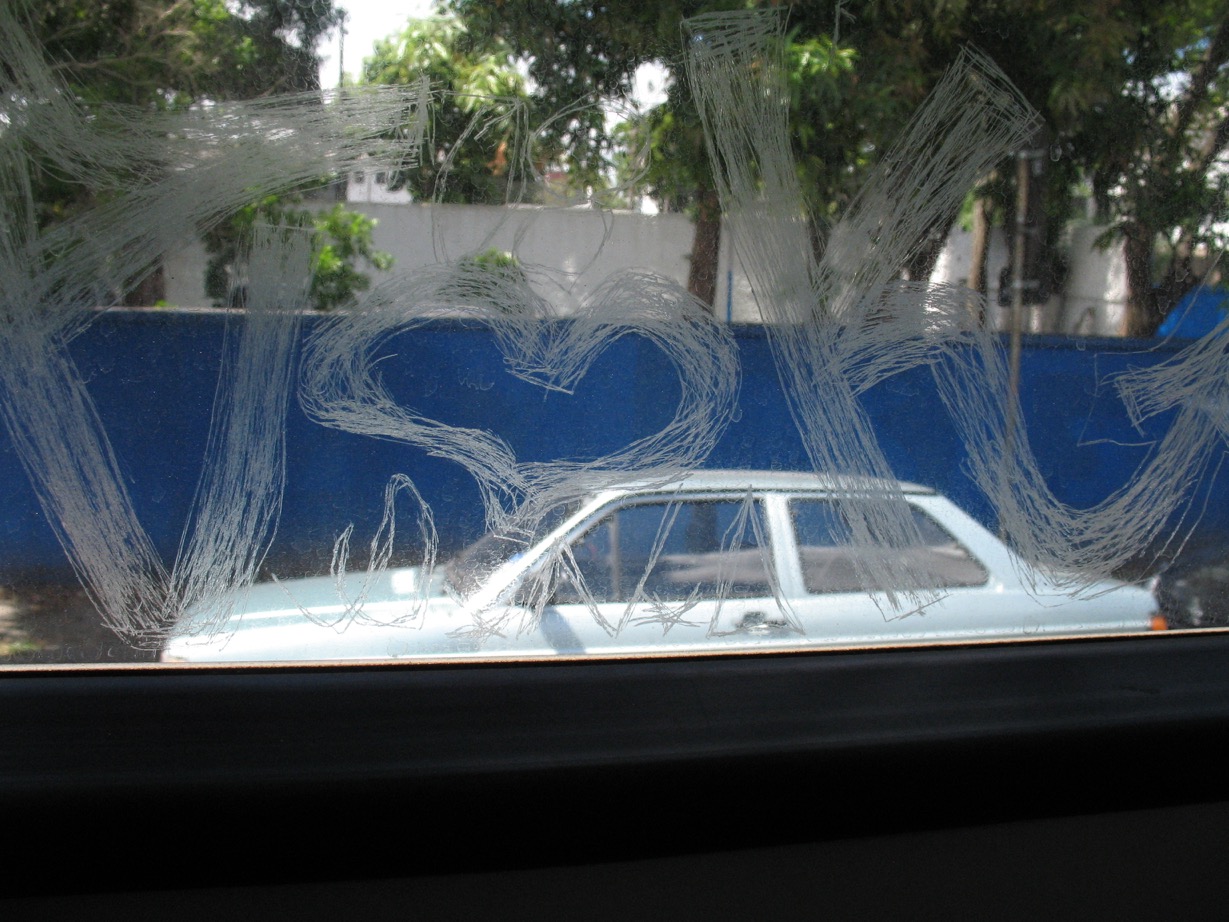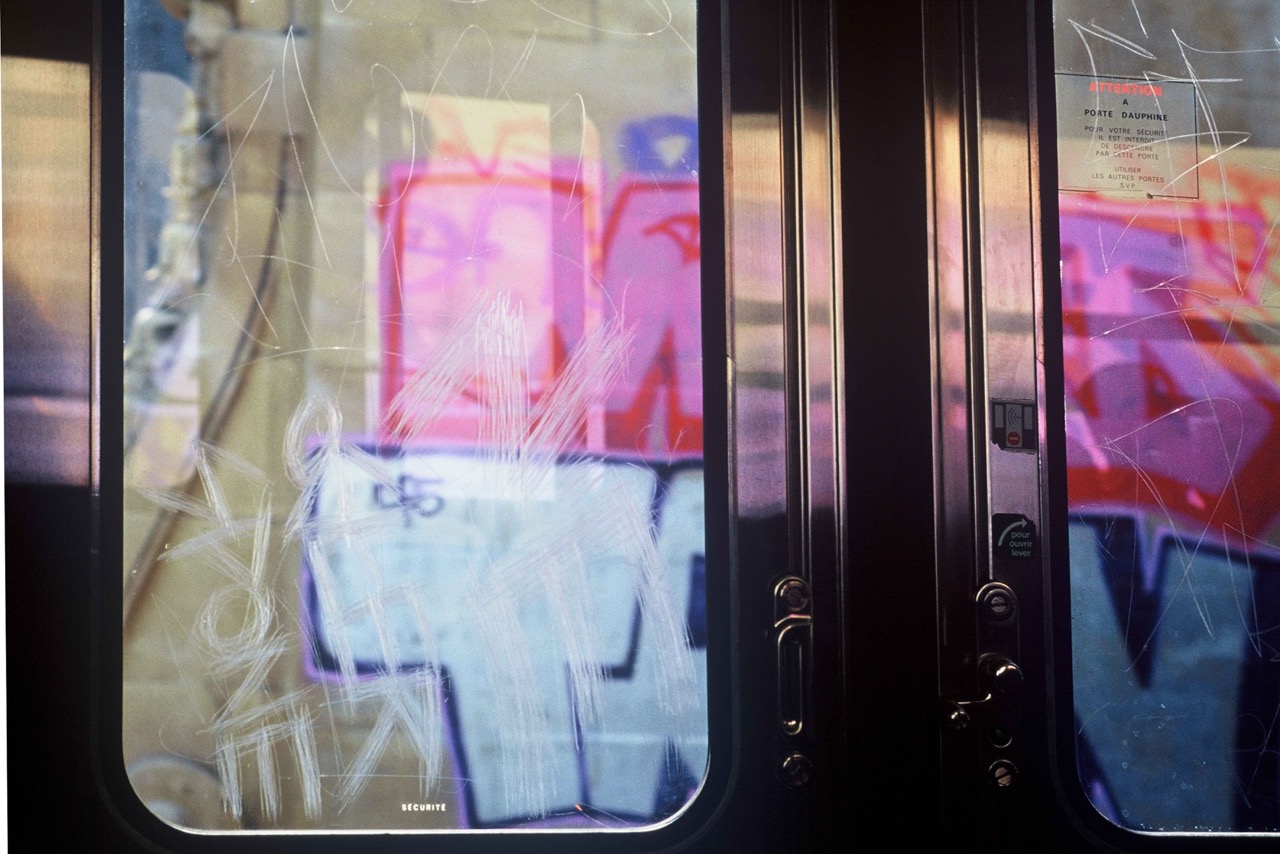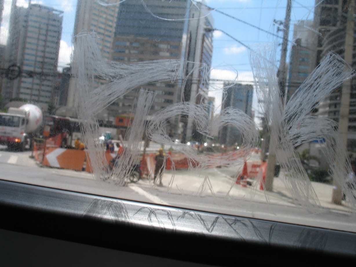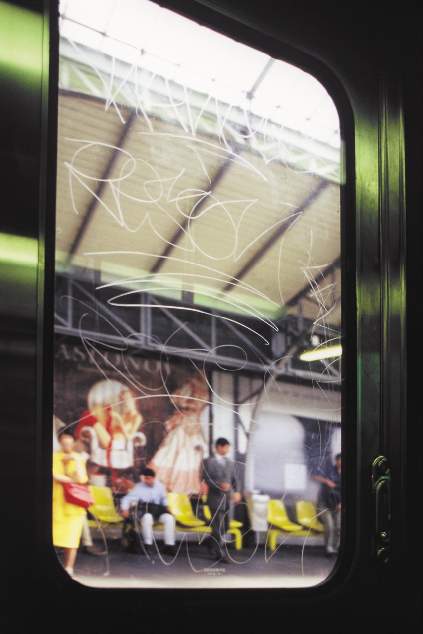 Existentmale addresses the phenomenon of the use of public transport windows as communicative displays of scratched tags.