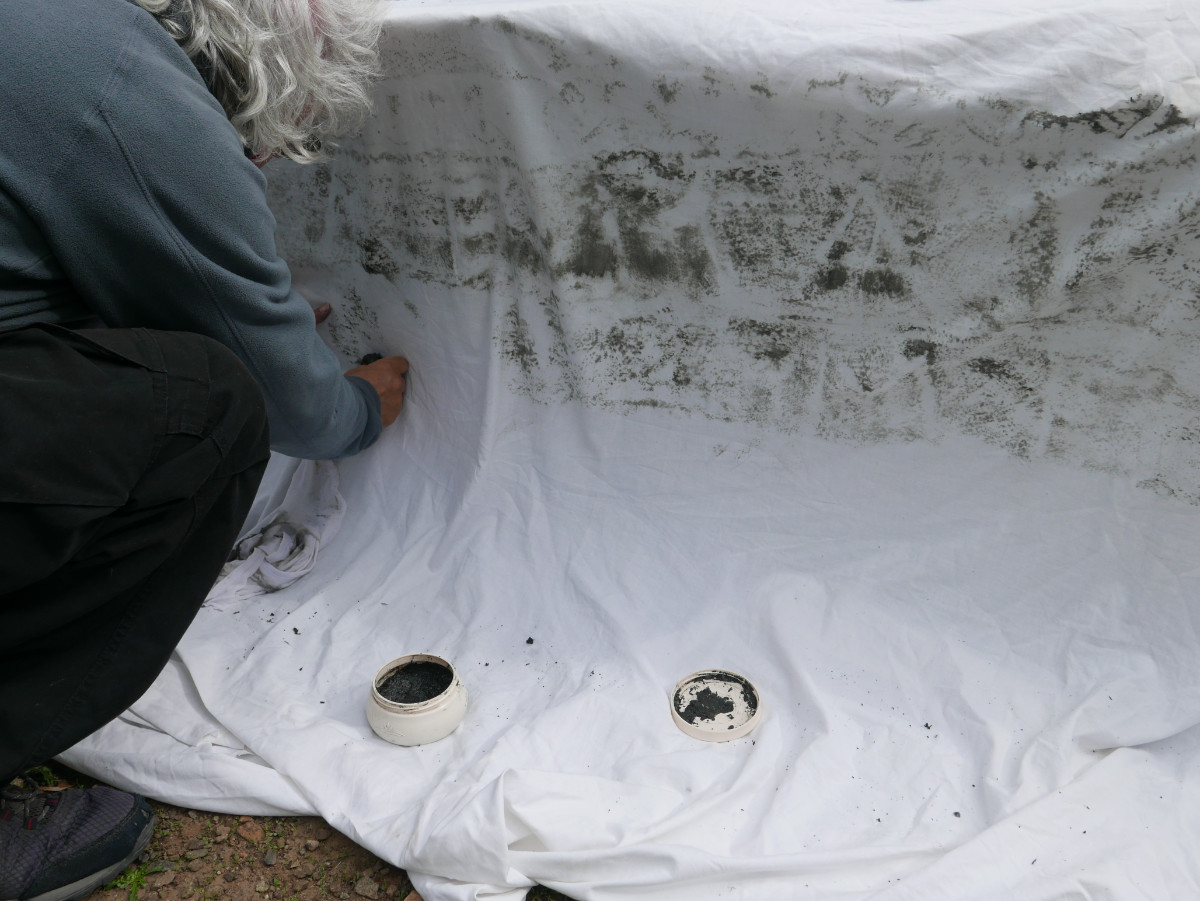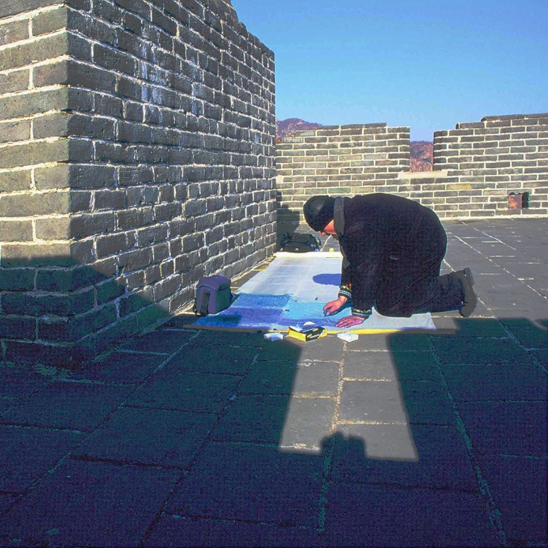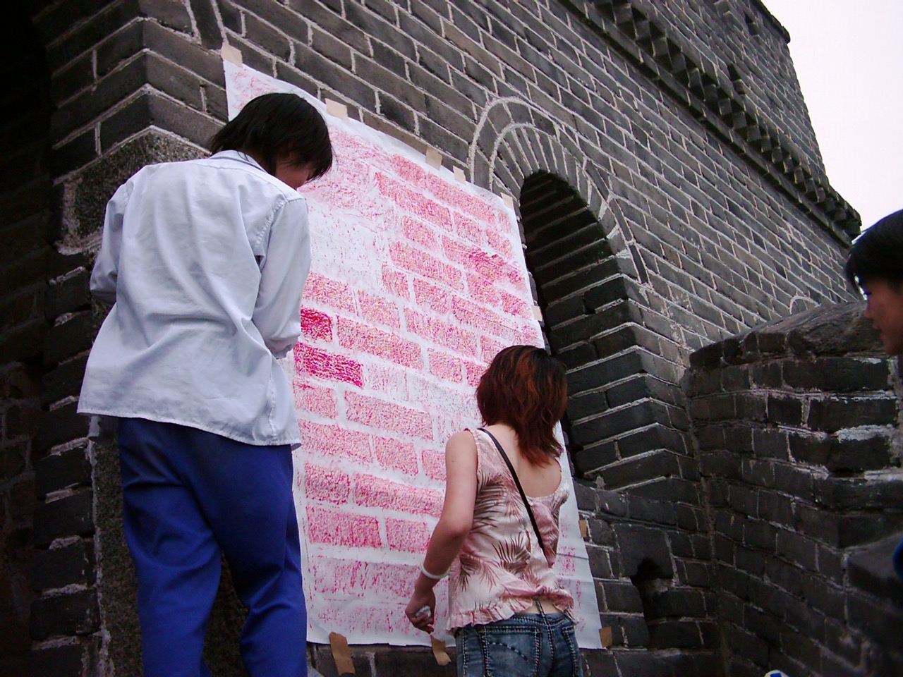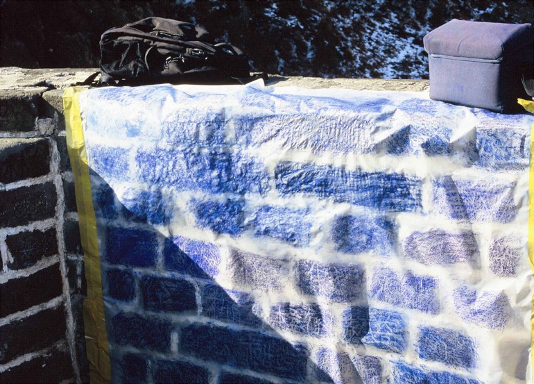 Surface structures of walls and stones are transferred onto paper or fabric using crayons and pencils, but mostly by means of a Chinese tampon technique acquired in the Palace Museum in Beijing. Often, a traditional silk specifically developed for East Asian calligraphy serves as the image support. Size and colour are adapted to on-site conditions.