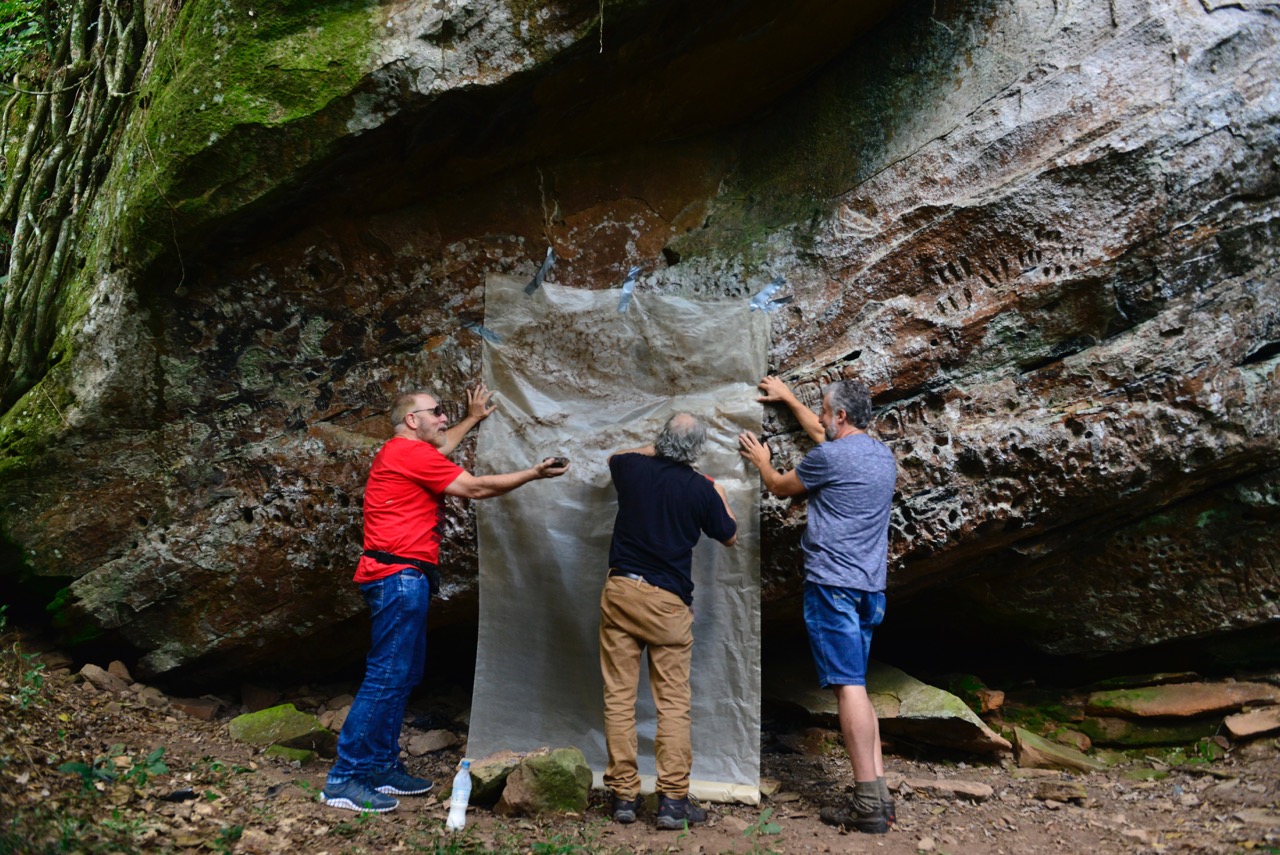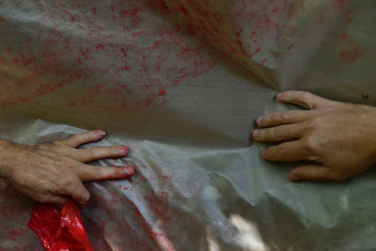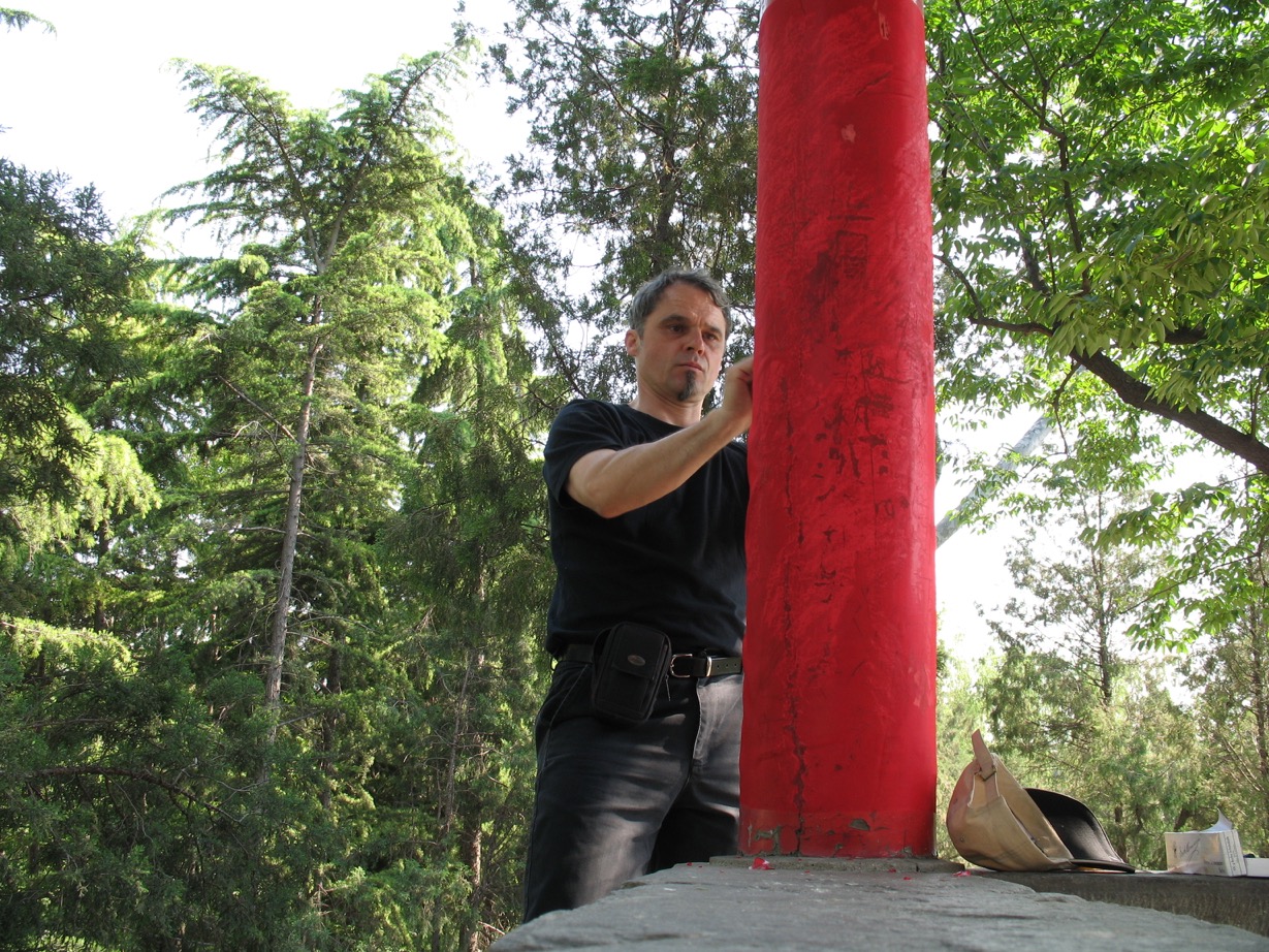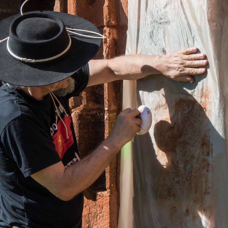 Surface structures of walls and stones are transferred onto paper or fabric using crayons and pencils, but mostly by means of a Chinese tampon technique acquired in the Palace Museum in Beijing. Often, a traditional silk specifically developed for East Asian calligraphy serves as the image support. Size and colour are adapted to on-site conditions.