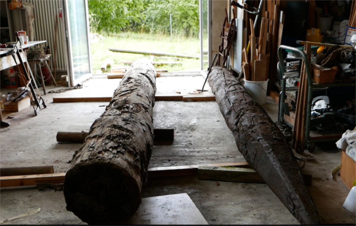 Two of the piles from the palace – driven into the ground in 1707 and removed in 2012 – form the printing blocks for the project: Preussisch schwarz-weiss (Prussian black and white).